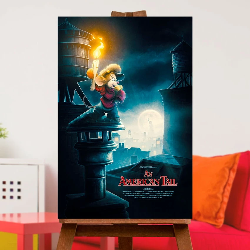 Capturing the bright shining hopes and dreams that drive young Fievel’s journey, and that of so many others in a strange new land, this beautiful poster art is a nostalgic and touching tribute to an all-time classic.
