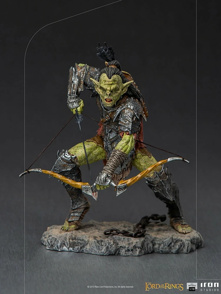 In the past, they were once Elves. Tortured and mutilated by the evil powers of Morgoth, the first dark lord of Middle-earth, they were transformed into a new grotesque form of life, the Orcs. Stretching his bow to shoot his poison-tipped arrow, the monstrous being with greenish skin, long pointed ears, and serrated teeth prepares his attack, ready to do anything to defend his territory. Beside him, on top of a tomb that houses the skeleton of a former Dwarf Lord, another of his brothers in arms is also prepared to attack, protected by rustic armor and wielding his spear and shield. And joining forces with the two, another relentless Orc wielding a sword joins the pursuit of the Fellowship of the Ring through Moria. In this way, Iron Studios presents the statues “Archer Orc, Armored Orc and Swordsman Orc BDS – Lord of the Rings – Art Scale 1:10 – Iron Studios“.