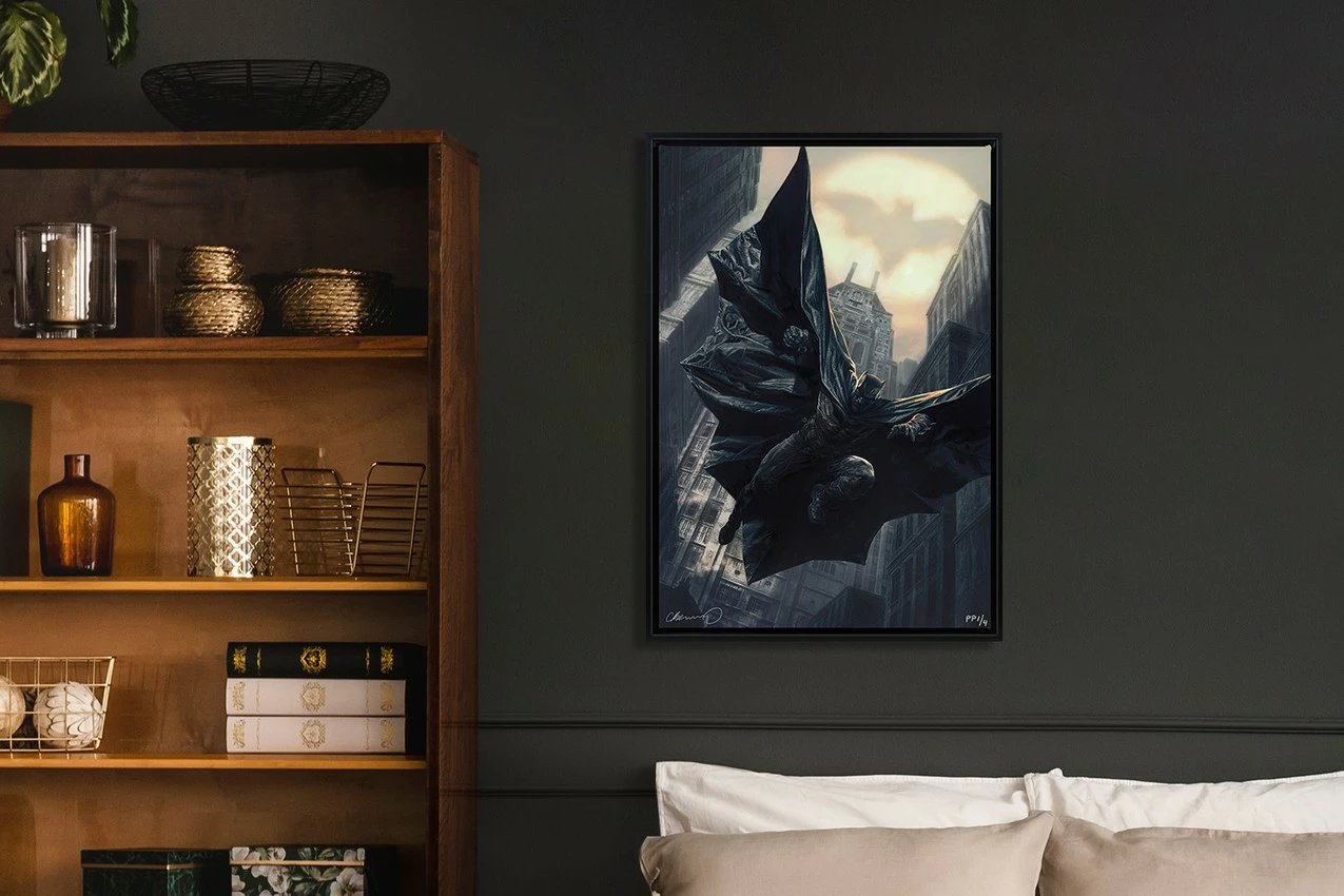 Originally created as a variant cover for Detective Comics #1019 (2020), written by Peter J. Tomasi for DC Comics, this comic book artwork is now available for fans in a fine art format. Each Batman Descent on Gotham: Detective Comics #1019 Canvas Art Print features an authorized, automated artist signature as a part of the limited edition of only 50 pieces. The canvas print is additionally finished with a certified archival varnish and comes mounted in a matte black wood floating frame with wire hanger for ease of display. This grim Batman wall art is a must-have for fans of the World’s Greatest Detective.