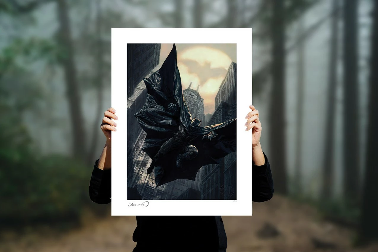Originally created as a variant cover for Detective Comics #1019 (2020), written by Peter J. Tomasi for DC Comics, this comic book artwork is now available for fans in a fine art format. Each Batman Descent on Gotham: Detective Comics #1019 Fine Art Print features an authorized, automated artist signature and an embossed Seal of Authenticity as a part of the limited edition of 150 pieces. Available as an unframed giclée or in a custom framed presentation, this Batman wall art makes a grim addition to any fan’s collection.