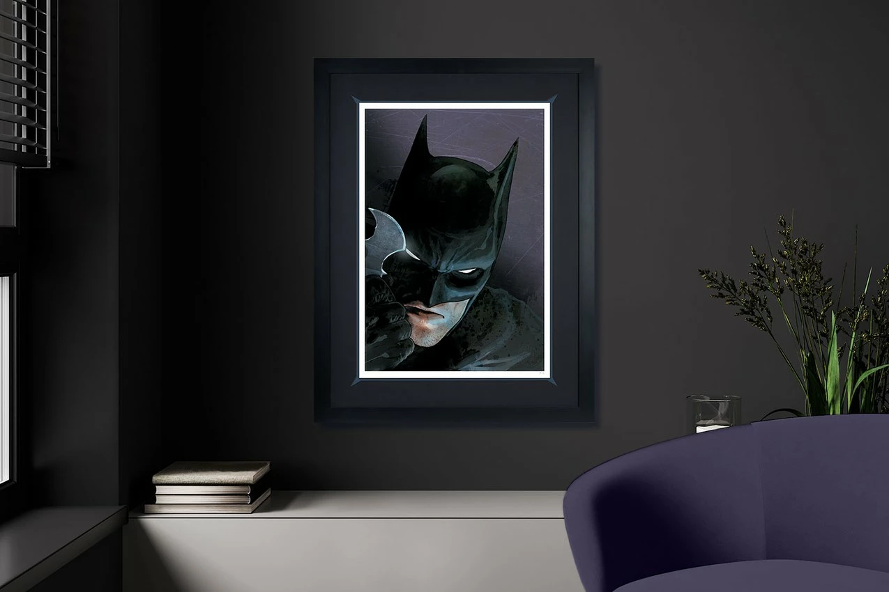 Originally created as the cover for Batman: Rebirth #1 (2016), written by Scott Snyder and Tom King for DC Comics, this Batman art comes professionally finished with a certified archival varnish and a black wood floating frame as part of the limited edition of only 25 pieces.