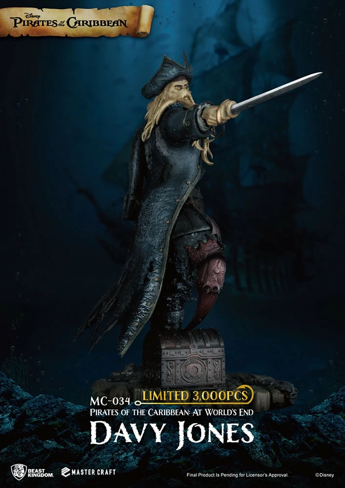 Sideshow and Beast Kingdom proudly present the very latest in high-end, hand-painted sculptures, with the Master Craft MC-034 Pirates of The Caribbean Davy Jones! Based on his appearance from the movie ‘At World’s End’, Jones is depicted with ferocity, resolve, and determination. He is seen pointing his trusted sword and protecting the locked chest, which stores his heart.