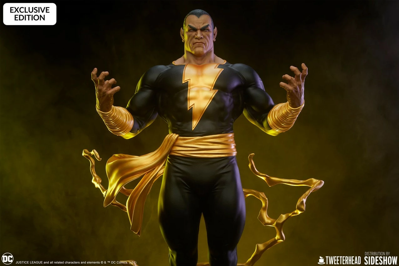Sideshow and Tweeterhead present the newest DC Maquette – Black Adam! The iconic supervillain hovers above the ground at an impressive 21 inches tall – battle ready and surrounded by lightning!