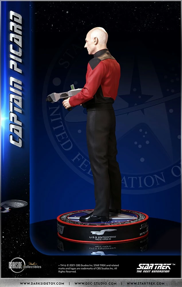 Your DarkSide Collectibles StudioTM Statue is also marked with the copyright of both CBS Studios Inc. and Darkside Collectibles StudioTM to guarantee authenticity. With three different iconic options of display this is the ultimate Captain Jean-Luc Picard statue.