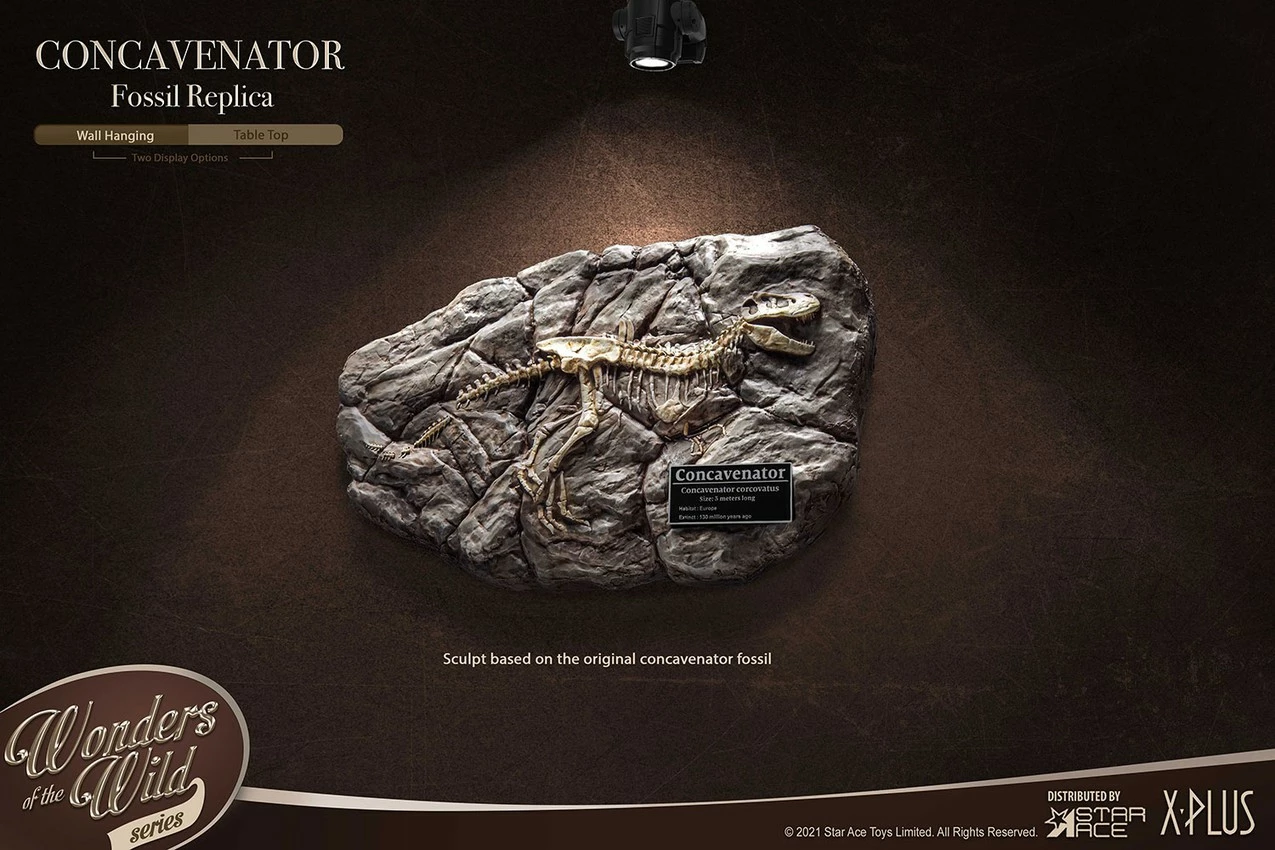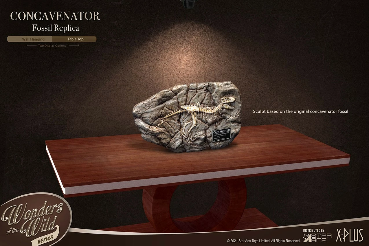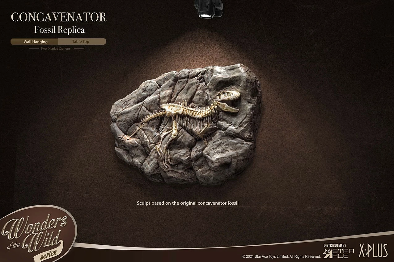 The Deluxe set also includes a Concavenator Fossil Replica is sculpted by the Star Ace designer team. This replica features the dinosaur as first discovered and makes an excellent companion piece to the dynamic statue. It can be displayed with or without its magnetically attachable nameplate. The Fossil Replica measures 31cm by 19cm and can be hung on a wall or sitting on a tabletop or shelf.