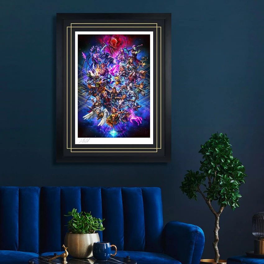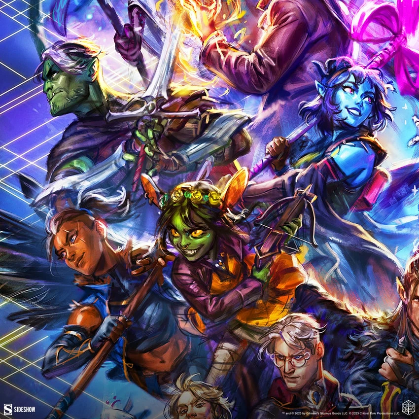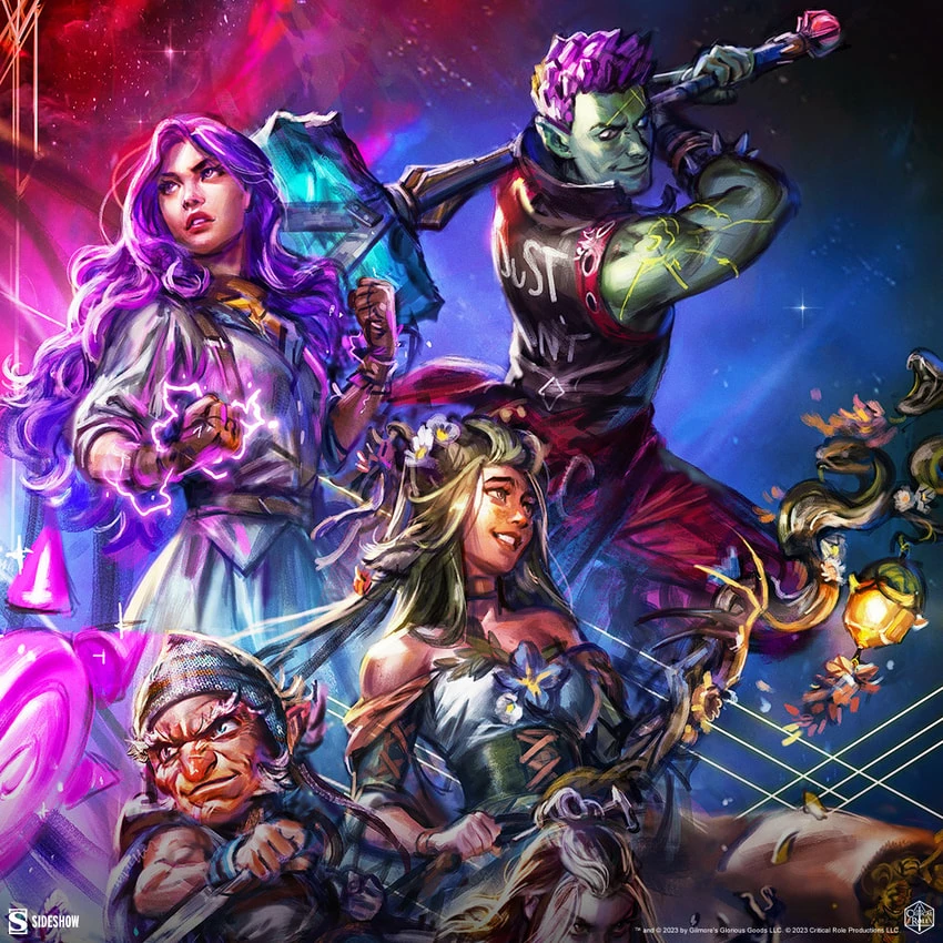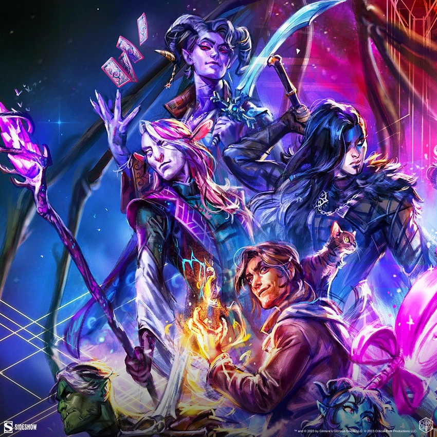 Each Critical Role: Threads of Fate Fine Art Print features an authorized, automated artist signature and an embossed Seal of Authenticity as a part of the Critical Role collection offered by Sideshow. This original, officially licensed Critical Role artwork is available as an unframed giclée or in a custom framed presentation, or in a numbered, limited edition aluminum metal format. Pair this print with your Vox Machina, Mighty Nein, or Bells Hells display for the ultimate celebration of Exandrian adventures!