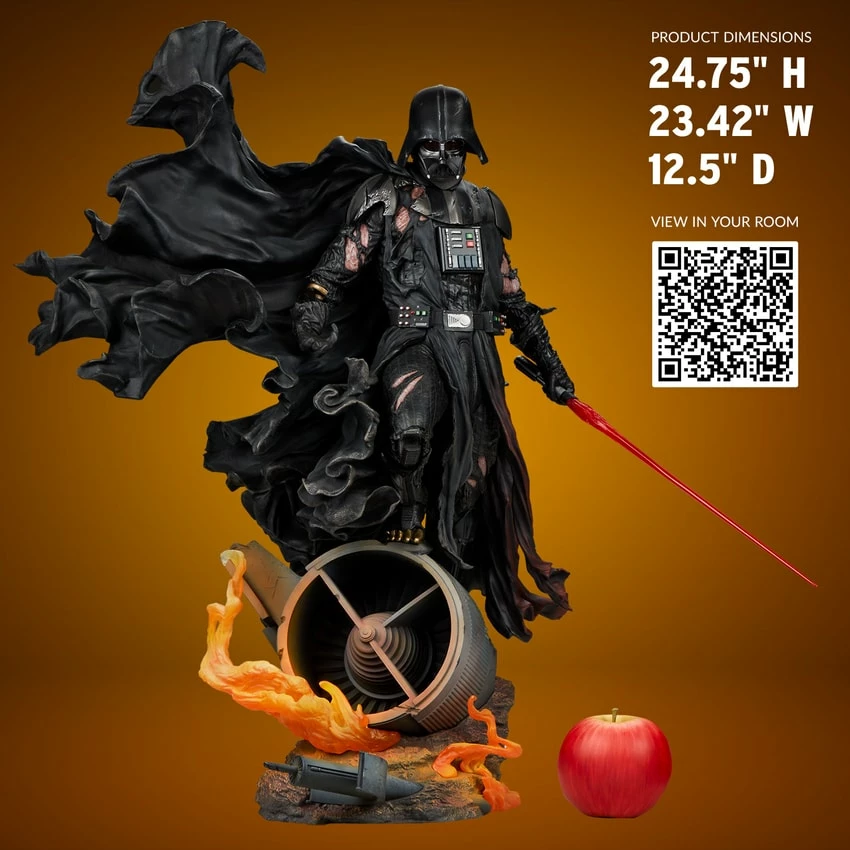 The Darth Vader Mythos Statue measures 24.75” tall and 24.4” wide as the menacing Sith Lord stands atop the flaming wreckage of a Rebel X-Wing™ engine, battle-worn but not backing down until he claims victory for the Galactic Empire. With lightsaber drawn and his armor in disarray, the dreaded villain shrugs off enemy fire while channeling his fearsome Force powers. Capturing the crossroads in his character evolution, this Star Wars statue includes two distinct portraits — one featuring his iconic helmet with slight battle damage, and one unhelmeted to reveal the scarred visage of Anakin Skywalker™ completely consumed by his own darkness.