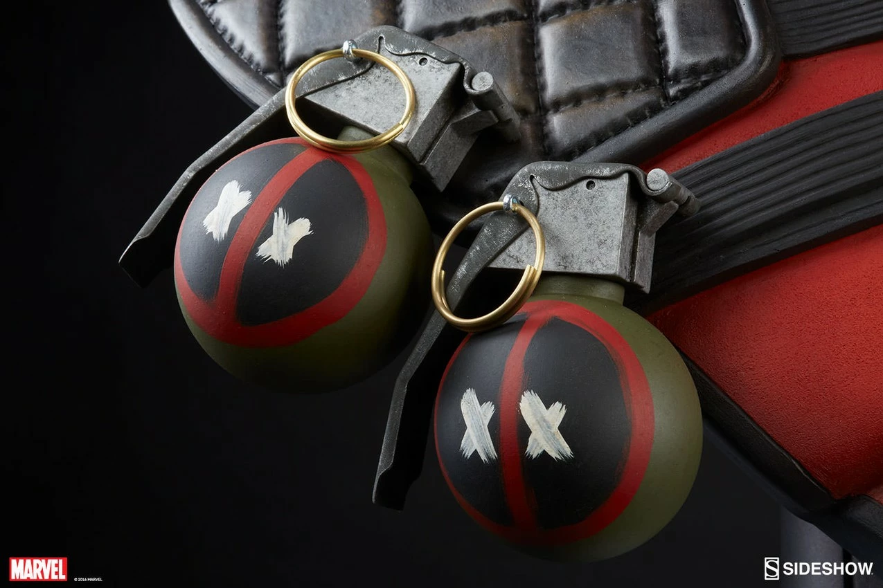 Sideshow is proud to unveil an all-new version of the notorious Merc with a Mouth, Deadpool. Lovingly sculpted in glorious (some would even say gratuitous) detail, every inch of your Mom’s favorite superhero has been brought to life in epic 1:1 scale. That’s right, 100% life-sized. Just be grateful we kept it above the waist!
