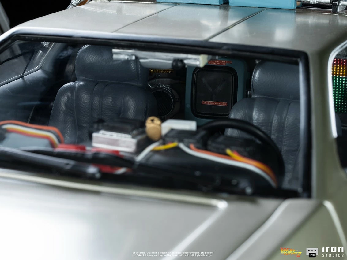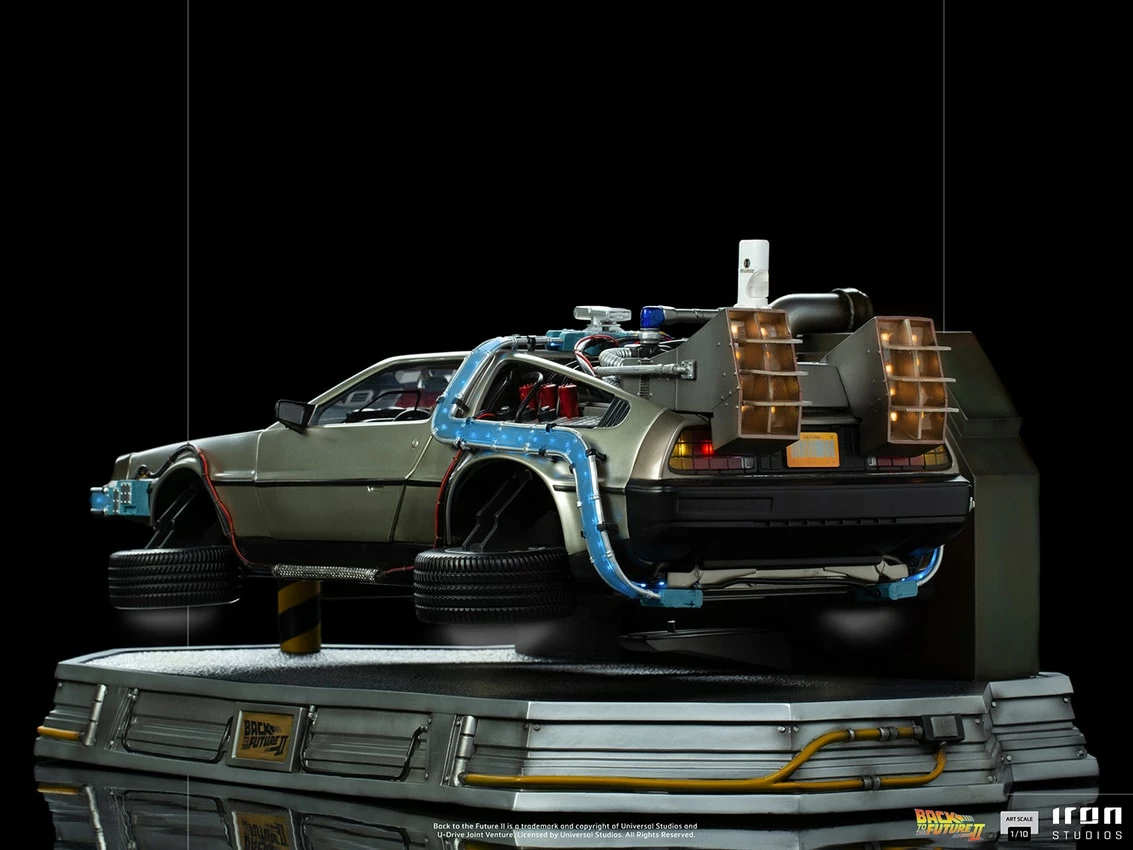 In the second part of the movie trilogy of the Back to the Future franchise, Marty McFly and Doc Brown travel to the imaginary future year of 2015 with the legendary DeLorean Time Machine, enhanced with a flight mechanism. The statues are the result of hard work of study and development by the Iron Studios team, which worked with maximum synergy to create this diorama that brings together all the nostalgia of the movie and the pop culture of the 1980s.