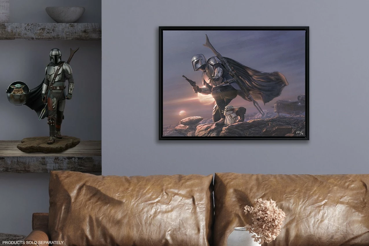 Each Din Djarin & Grogu: A Clan of Two Canvas Art Print features an authorized, automated artist signature and includes a Certificate of Authenticity as a part of the limited edition of 150 pieces. The canvas also comes professionally finished with certified archival varnish and a black wood floating frame complete with wire hanger for ease of display. Inspired by The Mandalorian and Grogu Premium Format™ Figure by Sideshow, this breathtaking Star Wars wall art will make a treasured addition to any collector’s own clan.