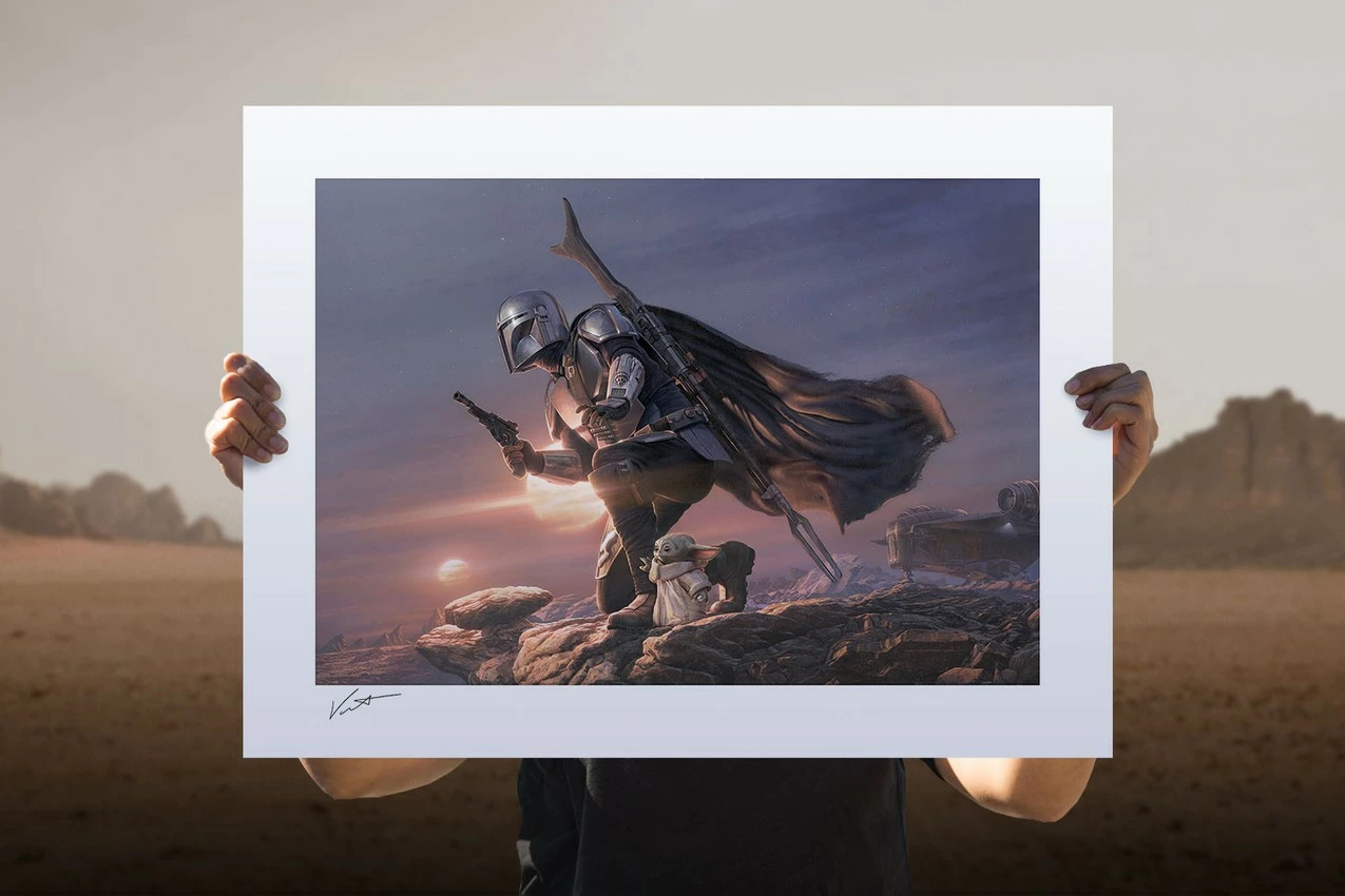 Go on the journey of a lifetime and bring home the Din Djarin & Grogu: A Clan of Two Fine Art Print by Jerry Vanderstelt today.