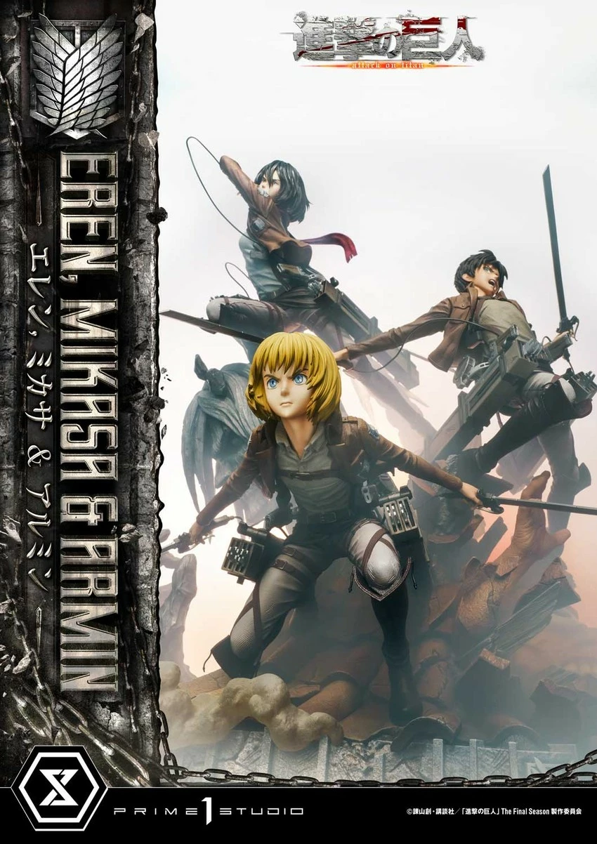 Prime 1 Studio is extremely proud to present a long-awaited entry into the Ultimate Premium Masterline Series: the 1:4 Scale UPMAOT-01: Eren, Mikasa, & Armin from Attack on Titan!