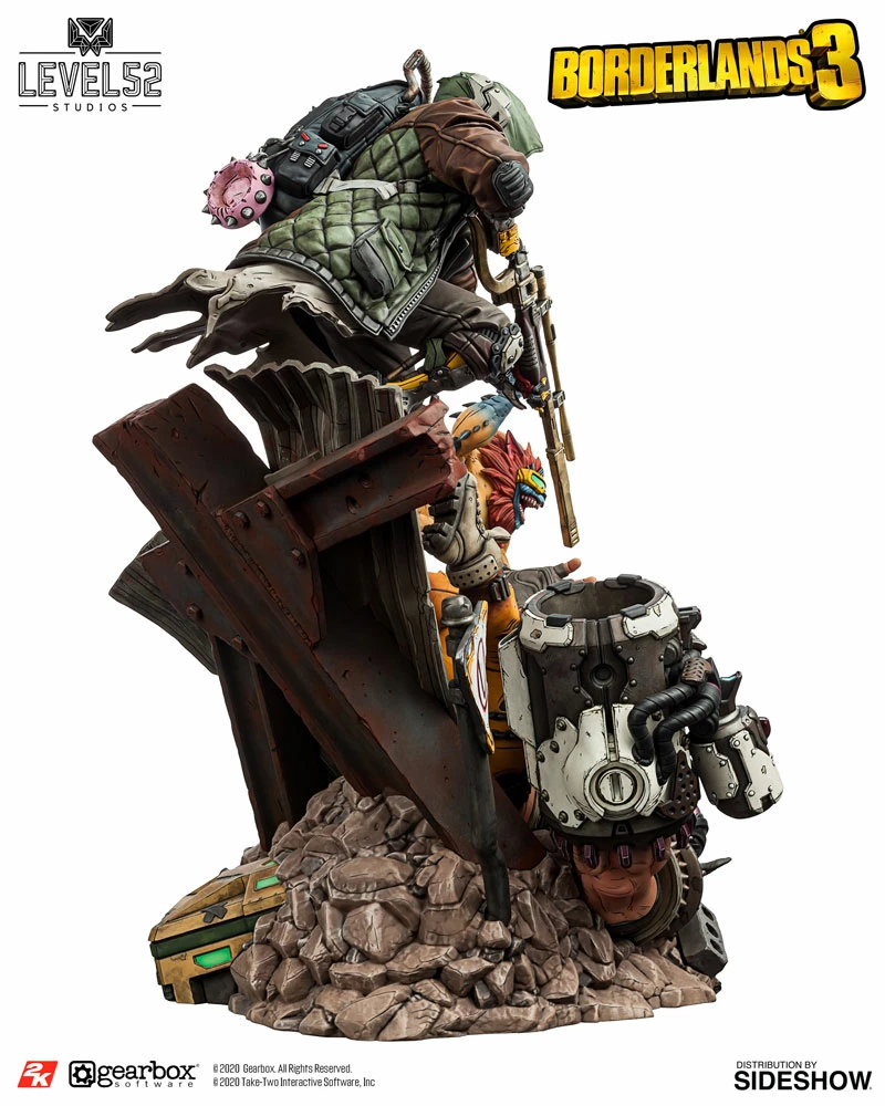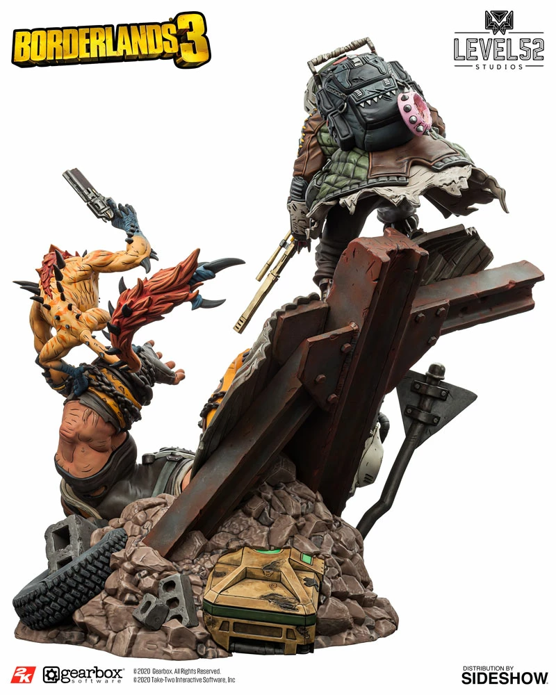 Behold the first release of Level52 Studios’ highly anticipated Borderlands statue series: A GOOD HUNT! Fl4k and their trusty Jabber companion close in on a Hag in this extraordinary 1:6 diorama, chock full of action-packed hunter glory. No detail is spared in this limited edition work of art, down to the buttons on Fl4k’s quilted jacket and the Hag’s glinting gold tooth. Even its composition reflects the frenetic energy of the Borderlands franchise, featuring characters tumbling across a field of Pandoran detritus, each painstakingly rendered in the game’s signature illustrative art style.