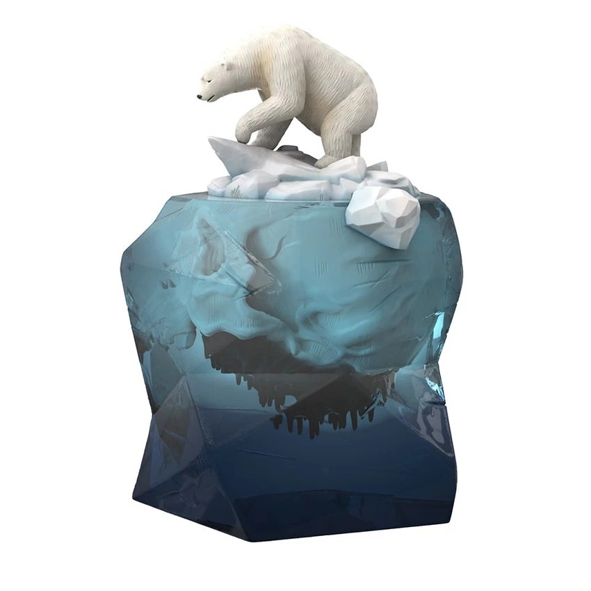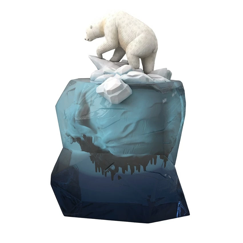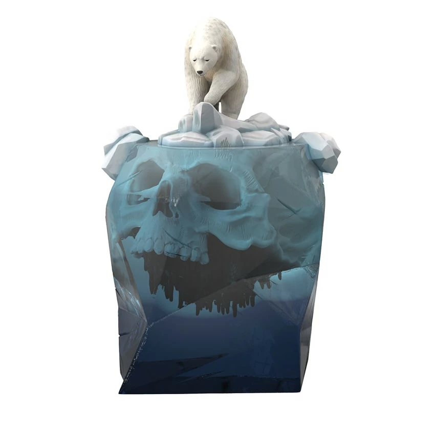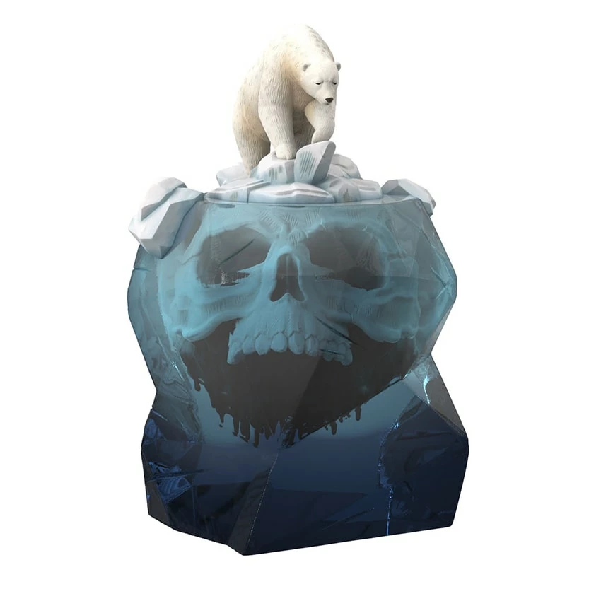 Standing 8″ tall, this thought-provoking piece is our first collaboration with artist Kerby Rosanes. Made from polystone, the layers of the piece are achieved through a double casting method whereby the opaque skull and bear are cast within the ice.