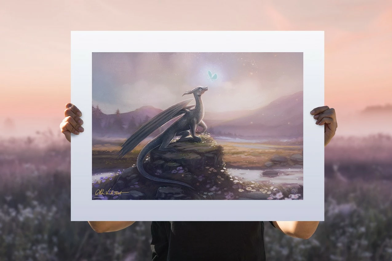 Each Guiding Light Fine Art Print is hand-signed by Adrianna Vanderstelt as a part of this release through Sideshow. Available unframed or in a custom framed presentation, this enchanting dragon artwork is a must-have for any fantasy enthusiast’s wall.