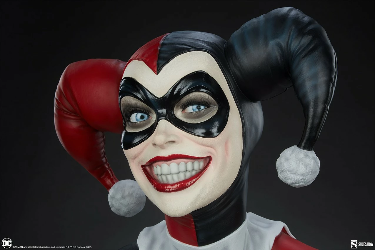Sideshow presents the Harley Quinn Life-Size Bust, grinning all the way from Gotham to your gallery of DC Comics collectibles.