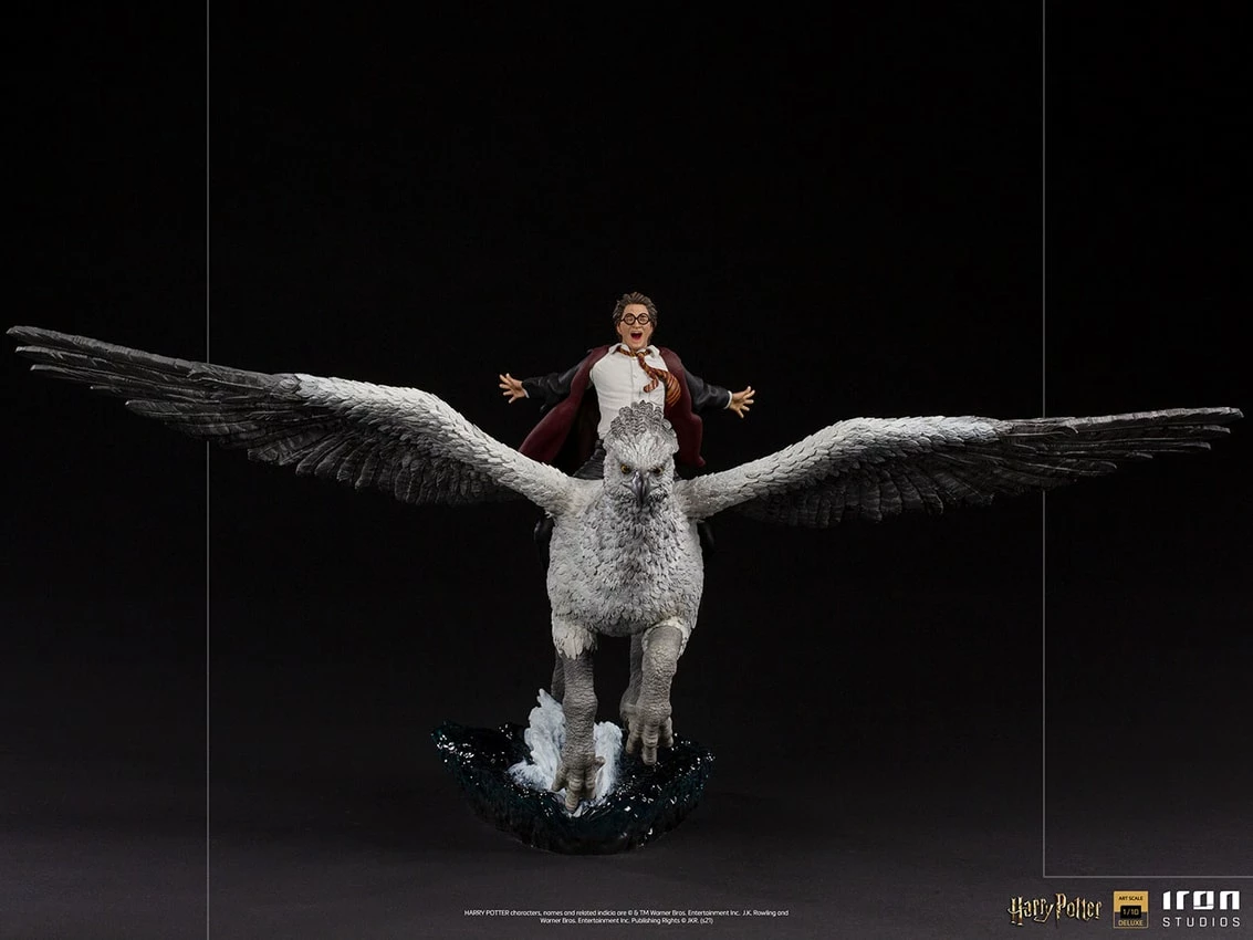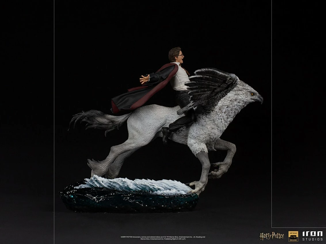 With Harry with open arms mounted on Buckbeak, with extreme care in every detail, seeking maximum fidelity both in the creature and in the figure of the protagonist played by actor Daniel Radcliffe, on a translucent base representing the lake of Hogwarts, the statue is added to the line of Harry Potter collectibles from Iron Studios, which represent remarkable moments in the films of the saga created by British writer J.K. Rowling.