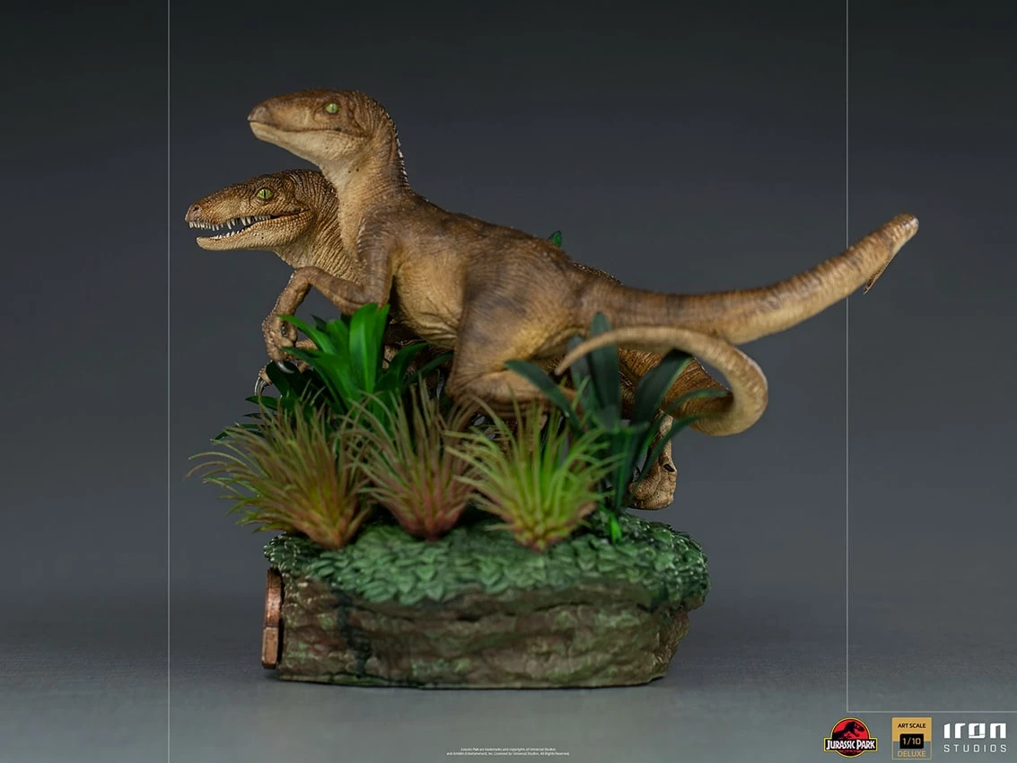 Sideshow and Iron Studios present the Just The Two Raptors Deluxe 1:10 Art Scale Statue from Jurassic Park. Based on the likeness of the dinosaur from the film, this limited edition polystone Jurassic Park statue is hand painted and includes a base.