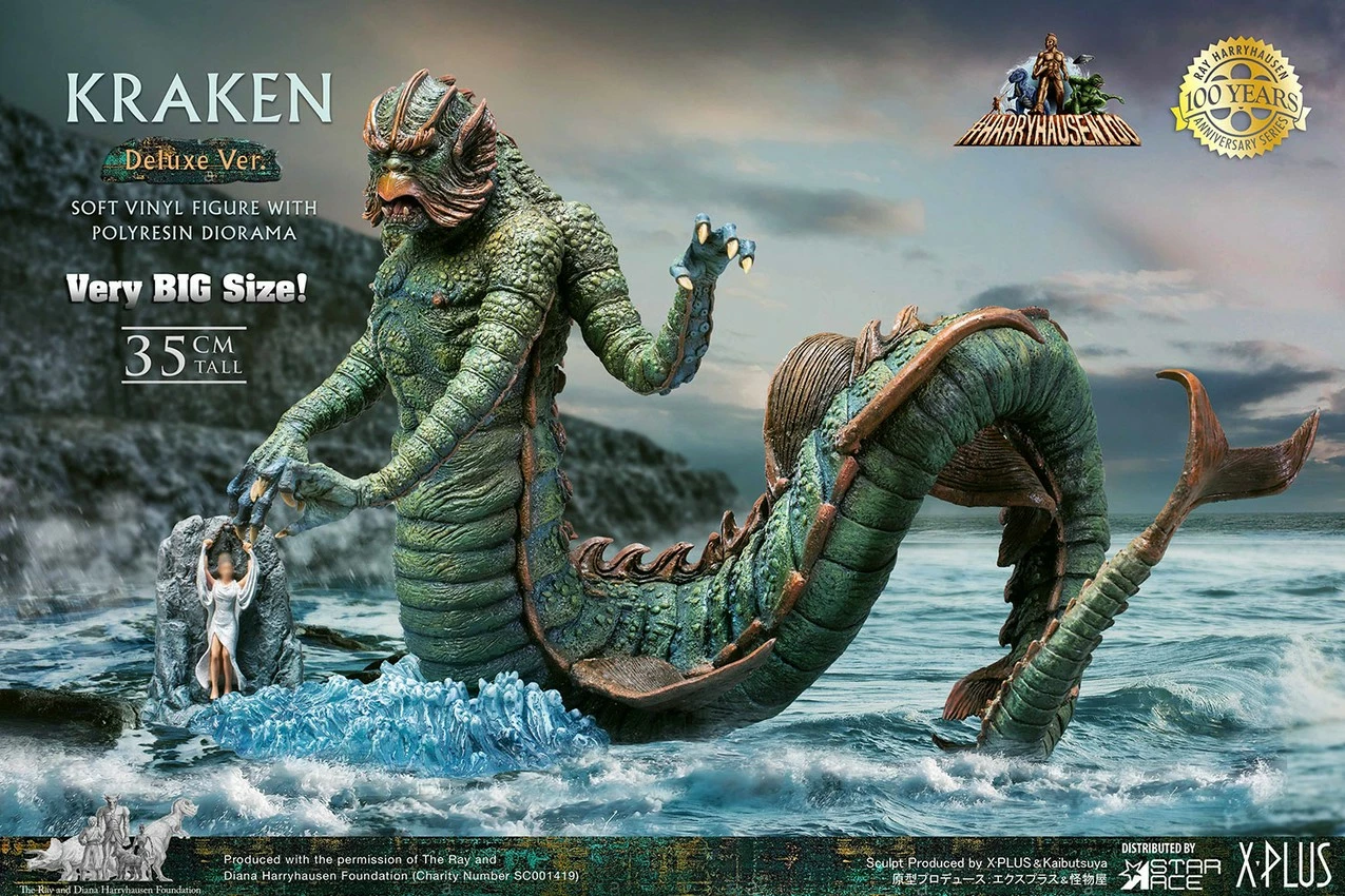The Super Vinyl statue of Ray Harryhausen’s Kraken is the largest creation Star Ace has ever made. Standing at 13″ tall and extending out a full 21″ in length, this impressive monster will be an amazing display piece for any collection. Traditionally sculpted by the artisans of the famed creature shop of Kaibutsuya, the statue is made from soft vinyl and is hand-painted to bring out the details of the sculpt.