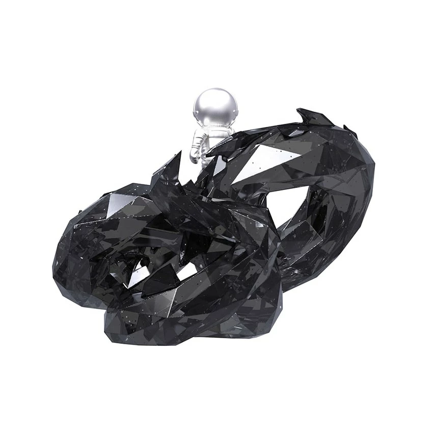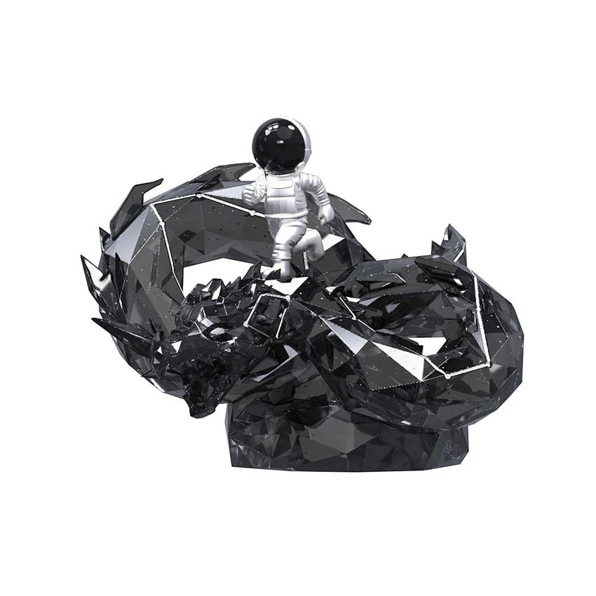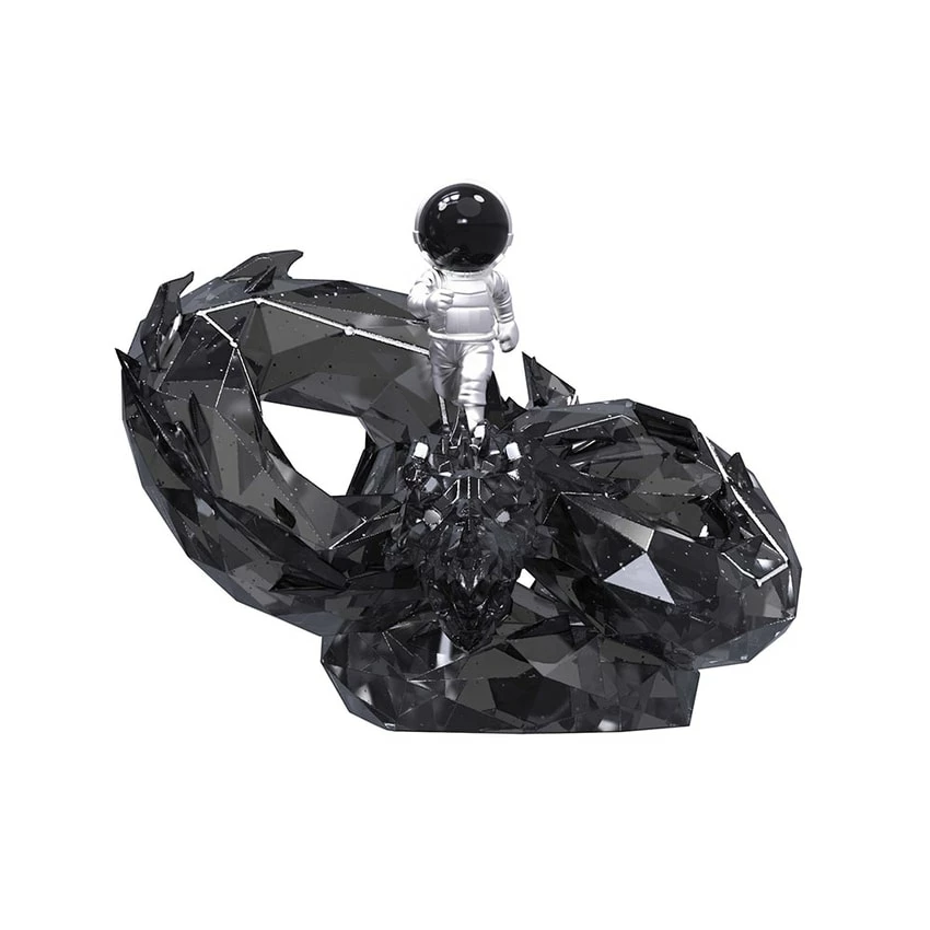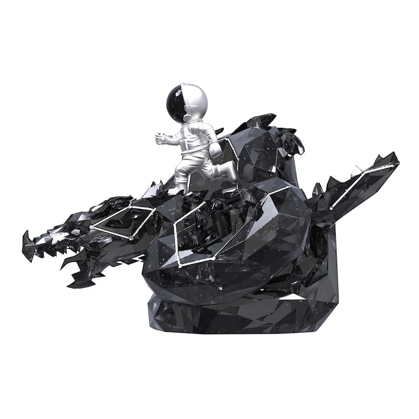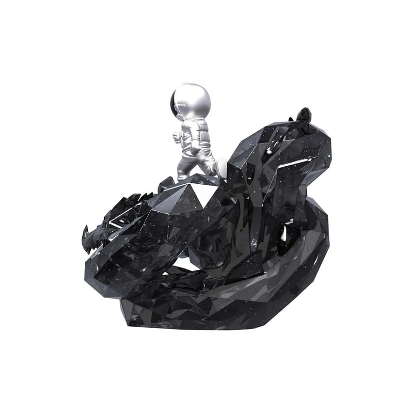 At 6” tall and 9” long, Lost Space Boy: Drace by Kerby Rosanes is made from polystone. The Draco constellation is engraved along the translucent body, paying homage to the group of stars that inspired this piece.