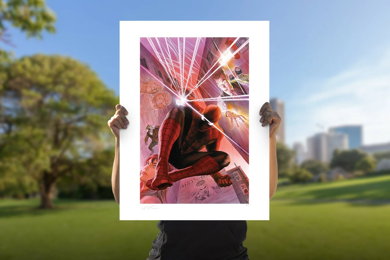 Celebrate this web-slinging hero’s legacy when you bring home the Marvel 75th Anniversary: Amazing Spider-Man #1 Fine Art Lithograph by Alex Ross today!