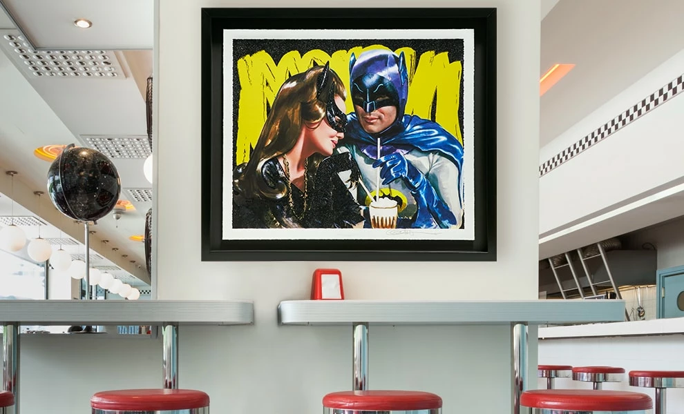 This is a must-have for fans of Batman and Catwoman- don’t miss your chance to bring home the Meanwhile, at the Sweet Shoppe… XL Deluxe Diamond Dust Fine Art Print today!