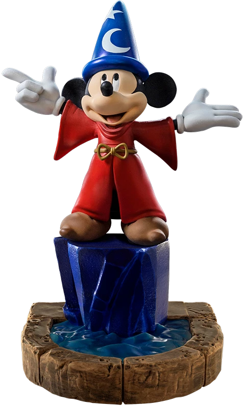 At the top of a column of crystallized rock, a young and excited sorcerer delights himself in his dream of controlling the waters from earth and sky, gesticulating like a maestro conducting a vigorous symphony while his servers, in the form of humanoid brooms, fulfill their task of filling up a water fountain in his castle until everything gets out of control. A Disney classic revered to this day as one of the seminal animation movies in the history of cinema, Iron Studios proudly present the Mickey Fantasia – Disney Fantasia – Art Scale 1:10 Art Scale Statue, in a base with the young sorcerer over the top of his conducting pedestal, inspired by the most famous part of the Fantasia animation from the Walt Disney Studios, based on the poem `L`Apprenti Sorcier` (The Sorcerer`s Apprentice) by Johann Wolfgang von Goethe.