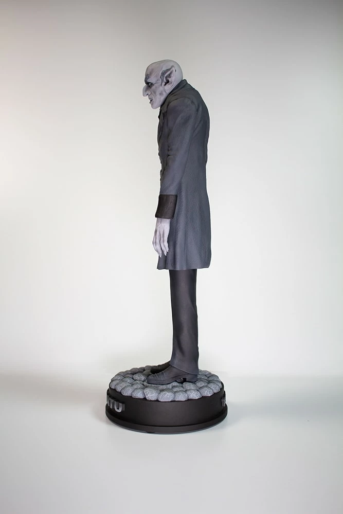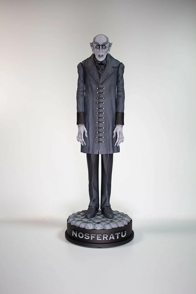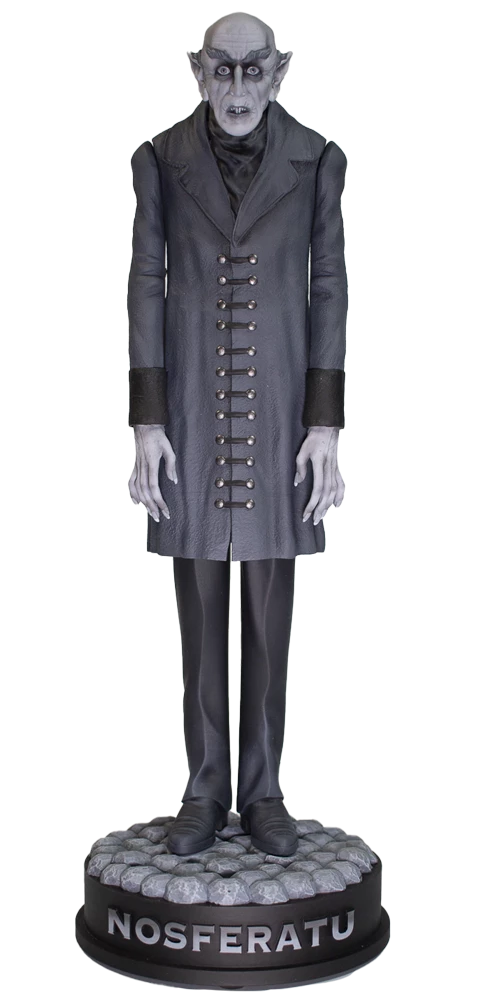 Highly detailed 1/6 scale collectible statue of Count Orlok from the 1922 silent film “Nosferatu: A Symphony of Horror.” Standing atop a cobblestone base, Count Orlok awaits. Masterfully detailed from his sickly-looking fingers with overgrown nails to his gnarled and pointed ears and of course those fangs. The perfect gift for a classic horror film fan. Offered in two color variations, full color and a monochromatic black and white version.