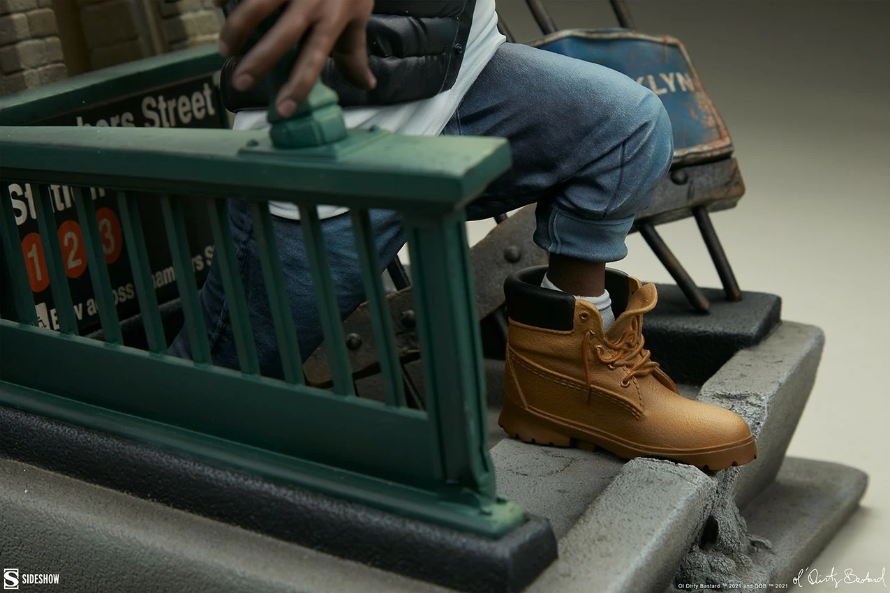 The Ol’ Dirty Bastard Statue measures 13” tall and 11.5” wide, depicting the one-man army rising up triumphantly from the New York subway while the Brooklyn Bridge towers above him. A Brooklyn warrior MC and an icon of hip hop culture, he stomps down hard on the scene, ready to make his mark on the world.