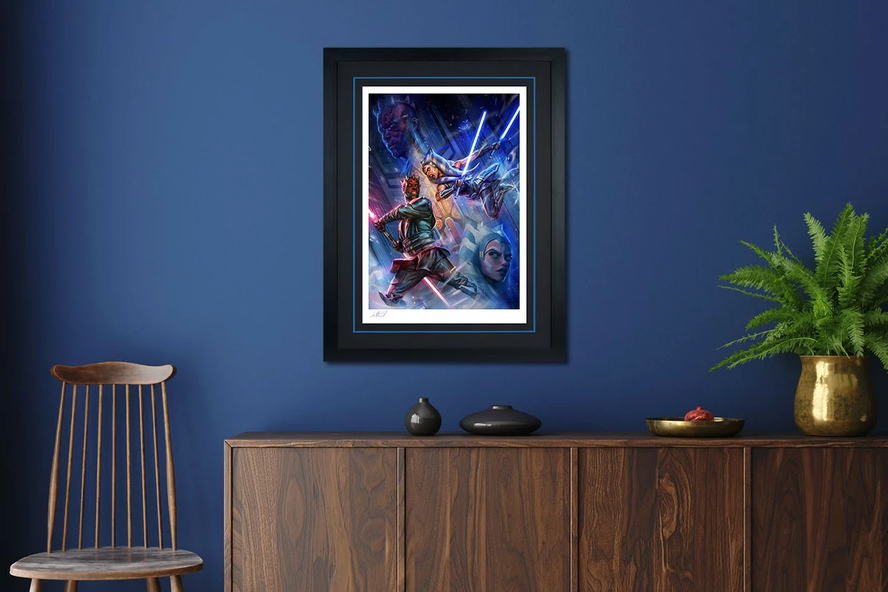 Each One Last Lesson: Ahsoka Tano vs Darth Maul Fine Art Print features an authorized, automated artist signature and includes a Certificate of Authenticity as a part of the limited edition of 750 pieces. This exhilarating Star Wars wall art is a must-have moment in galactic history for fans.