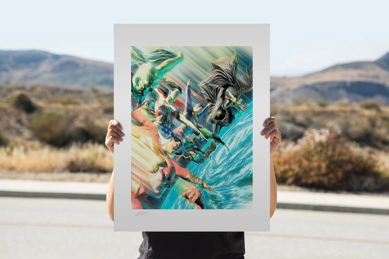 The Justice League will protect your DC Comics collection when you bring home the Protectors of the Universe Fine Art Lithograph by Alex Ross.