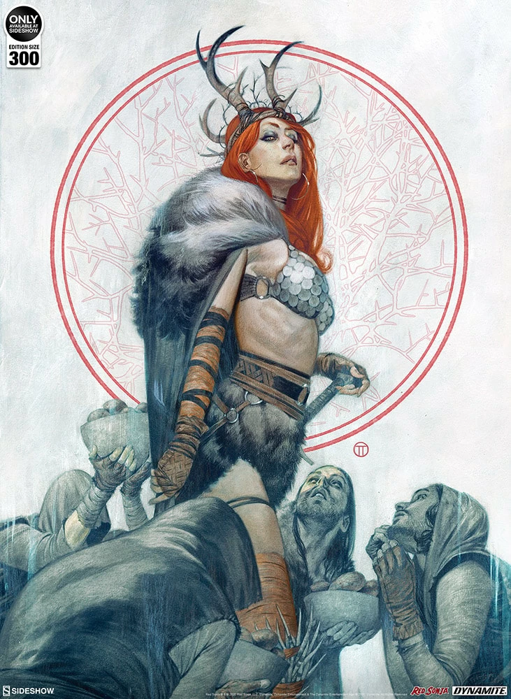 Sideshow presents the Red Sonja: Queen of Hyrkania Fine Art Print by artist Julian Totino Tedesco.