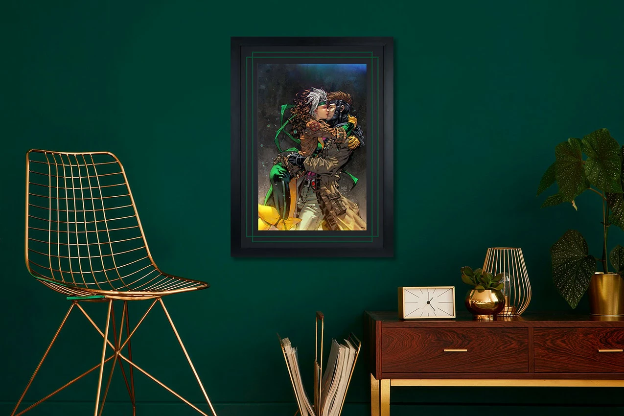 Originally created as a variant cover for X-Men #16 (2021), written by Gerry Duggan for Marvel Comics, this comic book artwork is available for collectors in a numbered edition of only 50 pieces. Each Rogue & Gambit HD Aluminum Metal Art Print has a glossy surface that is durable, scratch-resistant, and easy to clean. The piece comes professionally finished in a matte black floating wood frame with wire hanger for ease of display, meaning X-Men fans won’t want to miss a chance to bring home this Marvel artwork celebrating one of the most beloved couples in comics.