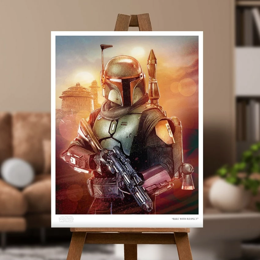 Sideshow and ACME Archives are proud to bring you the Rule With Respect Art Print by Adam Schickling! Inspired by the infamous bounty hunter’s reign in The Book of Boba Fett, this dignified Boba Fett artwork makes a great addition to any Star Wars collection! Each print is hand-numbered out of 195 pieces and comes with a Certificate of Authenticity.