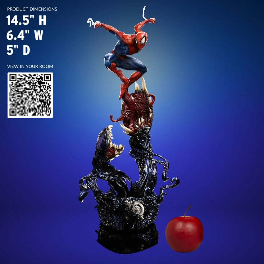 Sideshow and Iron Studios present a striking new piece from the Art Scale line – The Spider-Man 1:10 Scale Statue! Caught in a stunning leap mid-battle with a deadly Symbiote, this polystone statue puts Spider-Man’s acrobatics and athleticism on full display. This dynamic statue can be paired with the Venom 1:10 Scale Statue to create a more complete scene!