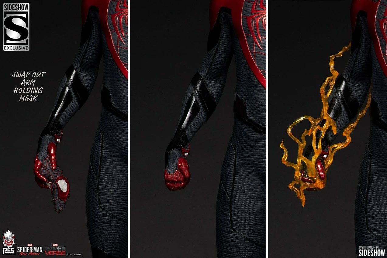 The Exclusive Edition of the Spider-Man: Miles Morales 1:3 Scale Statue includes an additional unmasked portrait based on Miles’ youthful appearance in-game, as well as an alternate right hand holding his unworn mask, giving fans multiple statue configuration options. Reveal the hero within and bring home these exclusive display possibilities only through Sideshow.