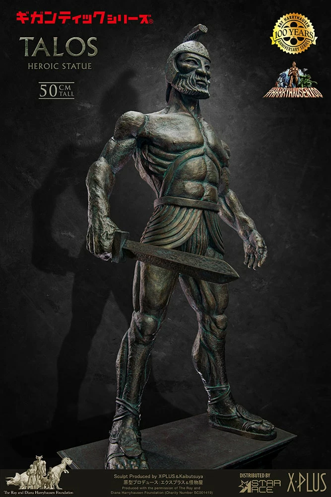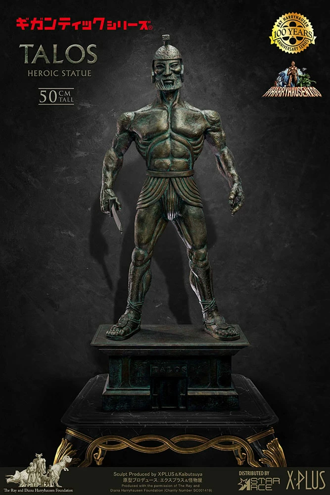 Sideshow is proud to present Star Ace’s “Gigantic” line of Ray Harryhausen statues with the titanic Talos who stands over 20” tall! The Greek hero Jason encountered the giant Bronze monster Talos when one of his crew stole from the treasure the giant guarded. This gigantic statue guarded a priceless treasure and when Jason’s sailors stole from it, the statue came alive to retrieve it.
