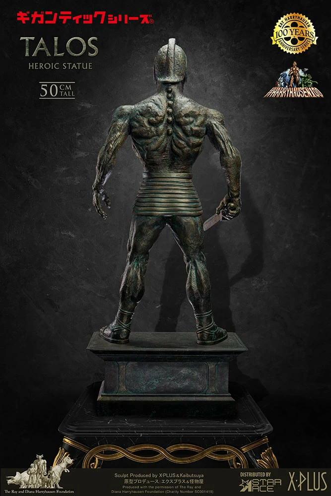 This “Gigantic” version of Talos is posed as the great titan was when first encountered by Hercules. Traditionally sculpted by the artisans of the famed creature shop of Kaibutsuya, this detailed Talos statue is made from soft vinyl. Each piece is hand-painted to look like it has an ancient Bronze finish.