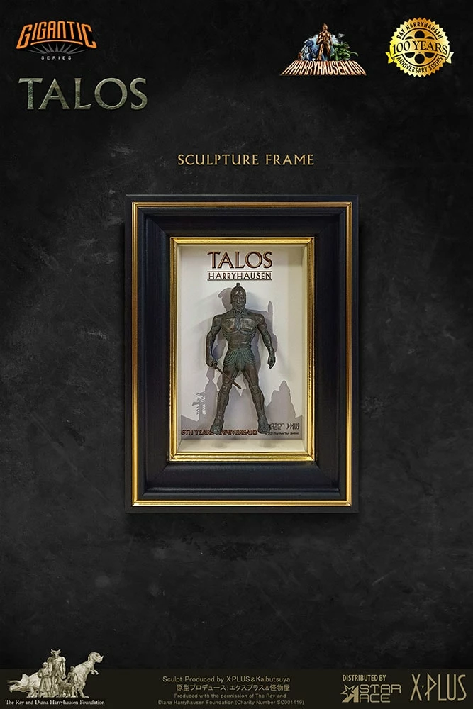 This framed version of the Talos 2.0 Statue is posed as the great titan was when first encountered by Jason. Traditionally sculpted by the artisans of the famed creature shop of Kaibutsuya, this detailed Talos statue is made to look exactly like its “GIGANTIC” series counterpart in a manageable, display-ready size.