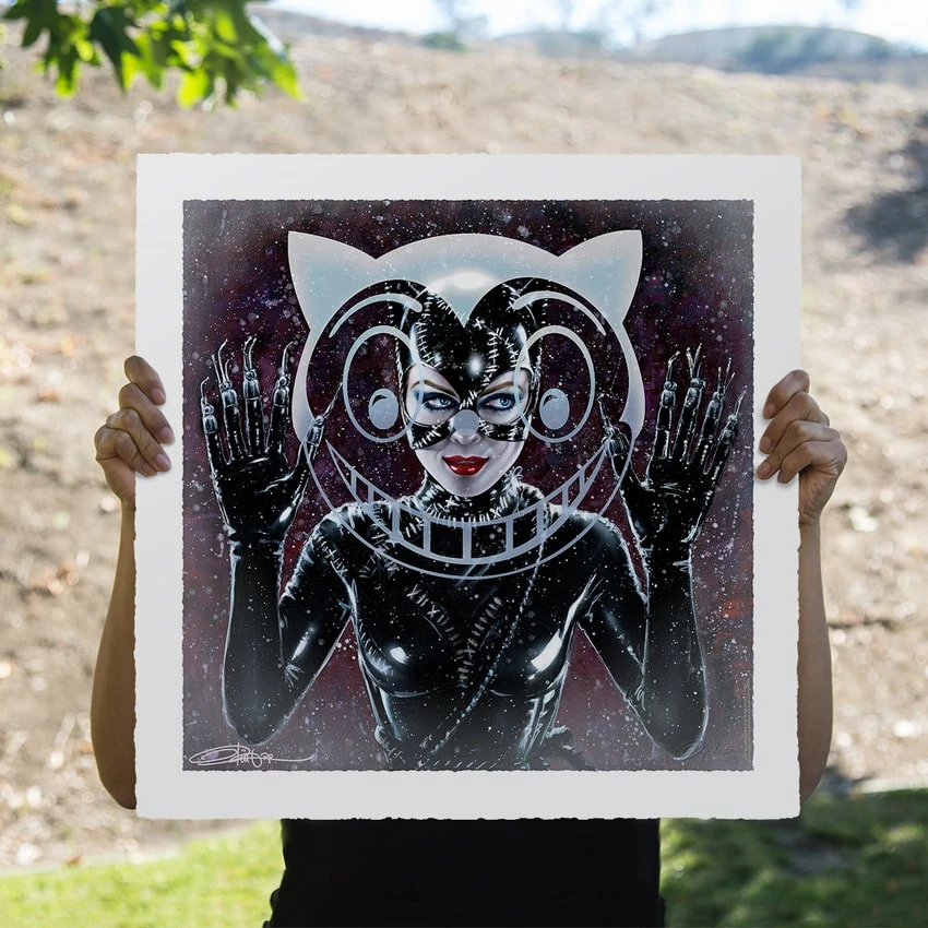 Inspired by Tim Burton’s Batman Returns (1992), this Catwoman art is now being offered for the first time in fine art form, presented as an unframed giclée with deckled hand-torn edges or in a custom framed format. Each The Catwoman Fine Art Print is hand-signed by Olivia herself and includes her official embossed Seal of Authenticity as well as a signed Certificate of Authenticity as a part of the limited edition of 300 pieces.