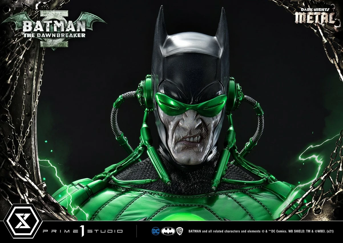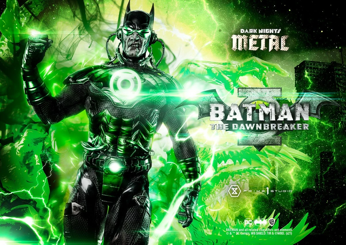 Prime 1 Studio’s The Dawnbreaker statue is poised to mete out his dark justice, floating in at 35 inches tall! The statue is a callback to Jason Fabok’s impressive Batman: The Dawnbreaker #1 cover, with its dark green energy, seething out from under Earth -32’s Bruce Wayne. The Dawnbreaker’s paint application boasts impressively vibrant, metallic green accents. The textural, and meticulously detailed sculpting of his costume only serves to enhance his terrifying visage. His base comes alive with horrifying constructs only a Dark Knight of Barbatos can conjure up. The Dawnbreaker’s dark-energy creatures are made of translucent green resin, with airbrushed highlights and shadows to accentuate the fearful forms.