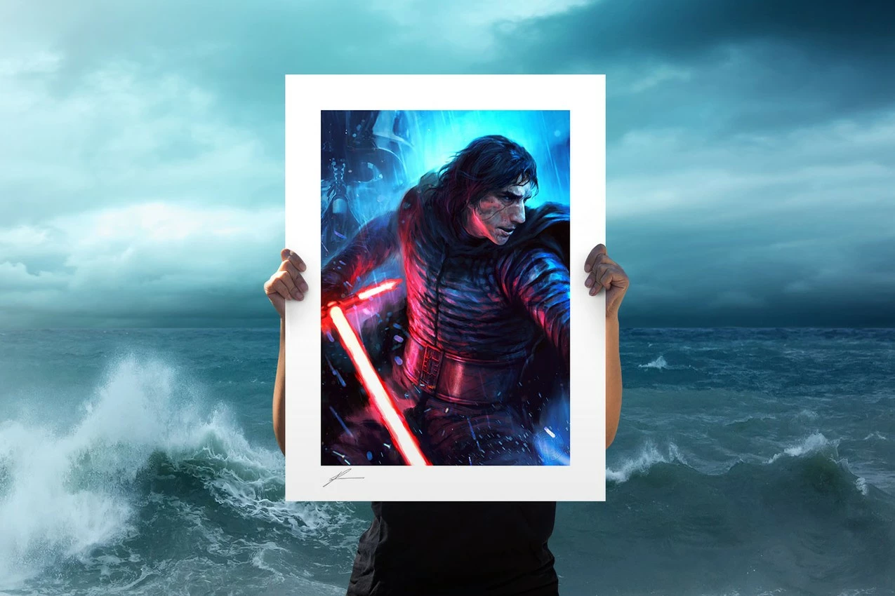 Inspired by his journey in Star Wars: The Rise of Skywalker™, this dramatic composition captures Kylo Ren, also known as Ben Solo™, and his legacy of rage. Haunted by the shadow of Darth Vader™, the Supreme Leader of the First Order confronts the truth that there is a dyad in the Force between the former scavenger Rey™ and himself. On the Death Star ruins in the stormy seas of Kef Bir™, Kylo and Rey draw their lightsabers in preparation for battle, each aiming to upset the balance between light and dark to draw their foe to the other side. Complete the climactic battle scene with The Duel: Rey Fine Art Print by Richard Luong, sold separately, and relive the fateful fight that defied the past and changed the future of the galaxy as we know it.