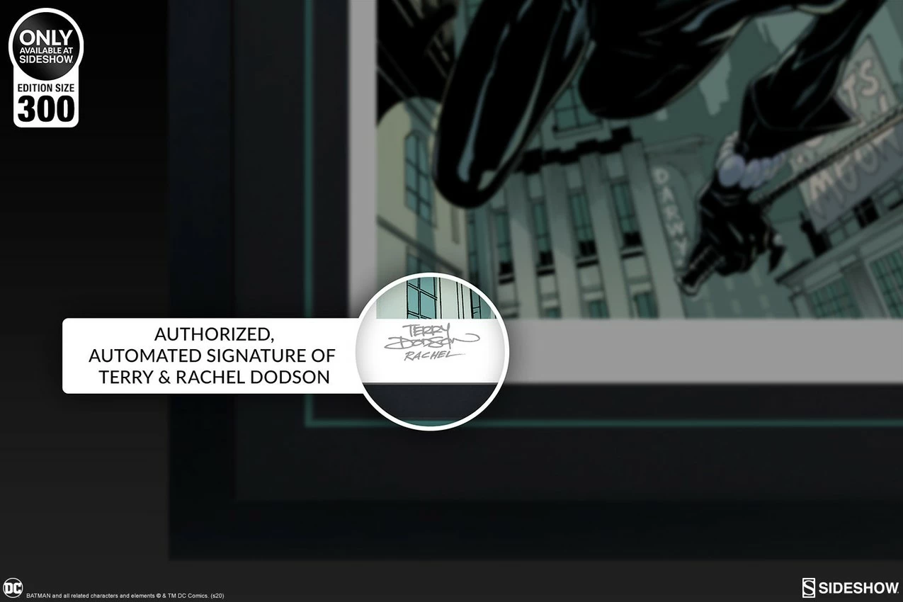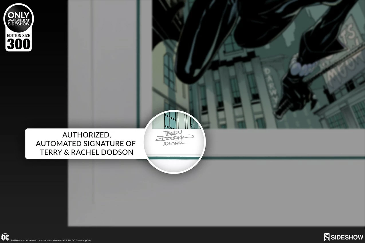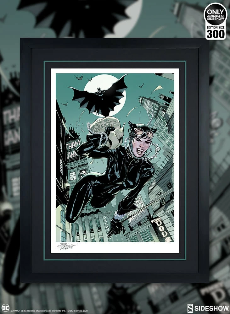 Originally created as a variant cover for Midtown Comics Batman Rebirth #1, written by Tom King for DC Comics, this dynamic illustration is now available for collectors in a fine art collectible format. Each Getaway: Batman & Catwoman Fine Art Print features an authorized, automated artist signature as a part of the limited edition of 300 pieces.
