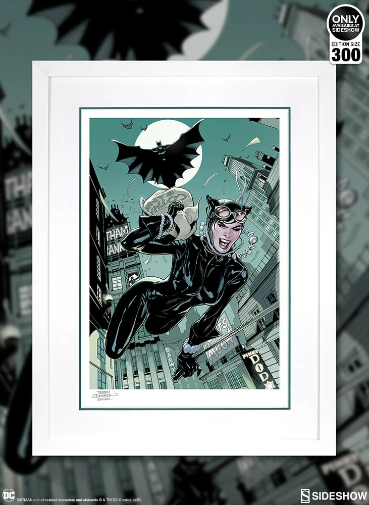 Sideshow presents The Getaway: Batman & Catwoman Fine Art Print by artists Terry and Rachel Dodson.