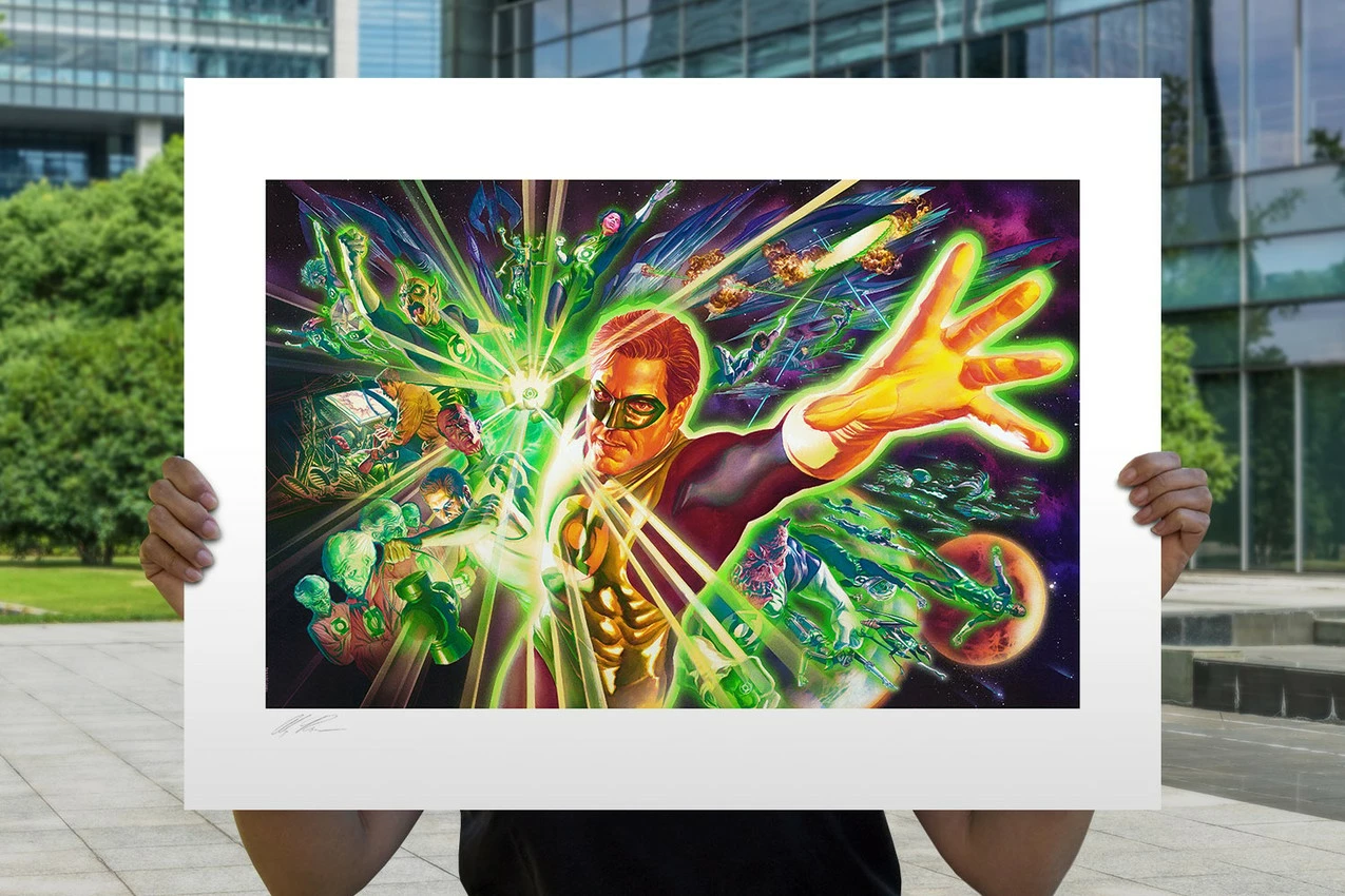 In brightest day, in blackest night, bring home The Green Lantern Corps Fine Art Lithograph by Alex Ross for your DC Comics collection today!