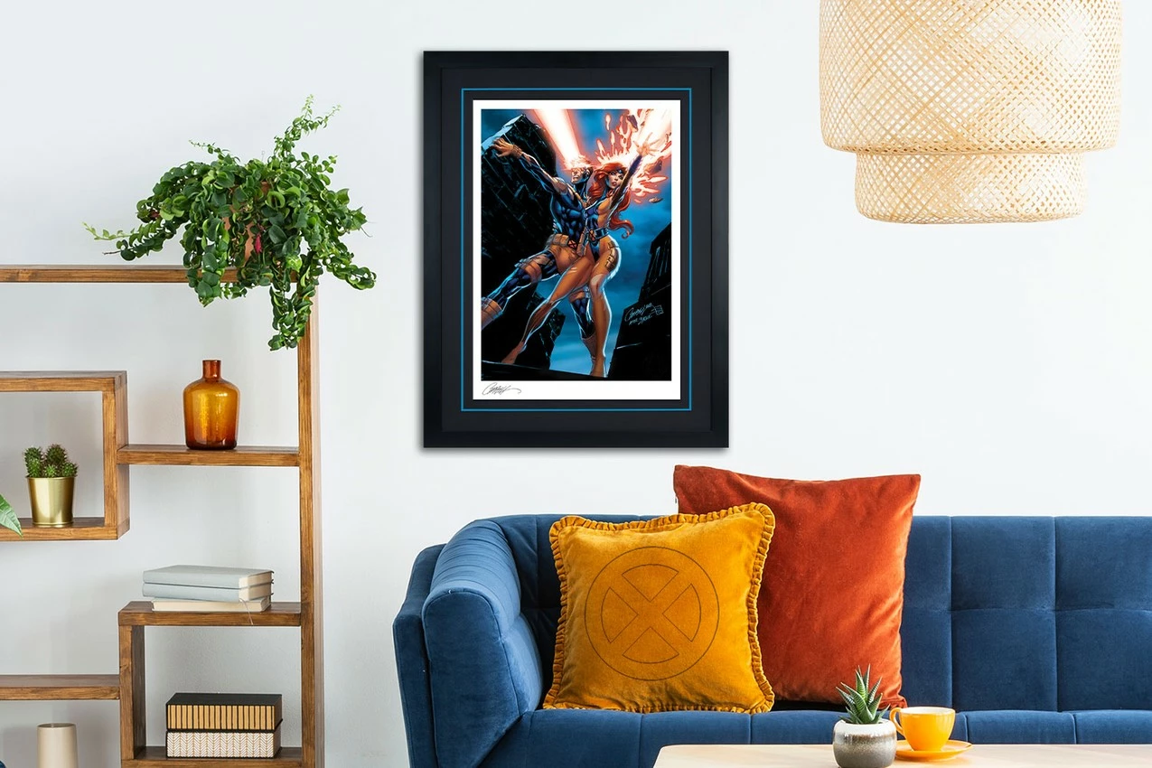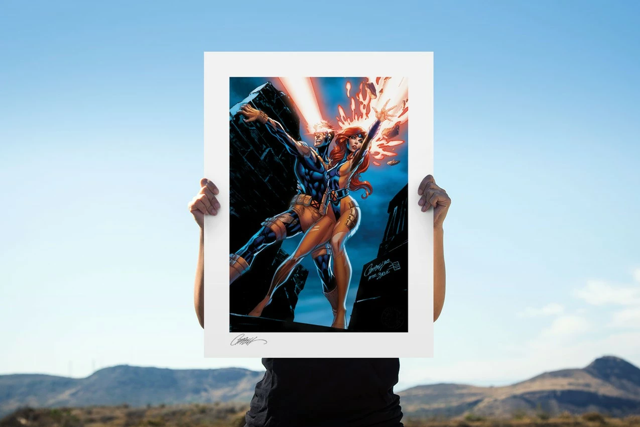 Originally created as a variant cover for Uncanny X-Men #1 (2018), written by Ed Brisson, Matthew Rosenberg, and Kelly Thompson for Marvel Comics, this comic book artwork is now available for X-Men fans as a high-end Marvel art print. Each Uncanny X-Men: Cyclops and Jean Grey Fine Art Print is hand-signed by J. Scott Campbell and features an embossed Seal of Authenticity as a part of the limited edition of 250 pieces.