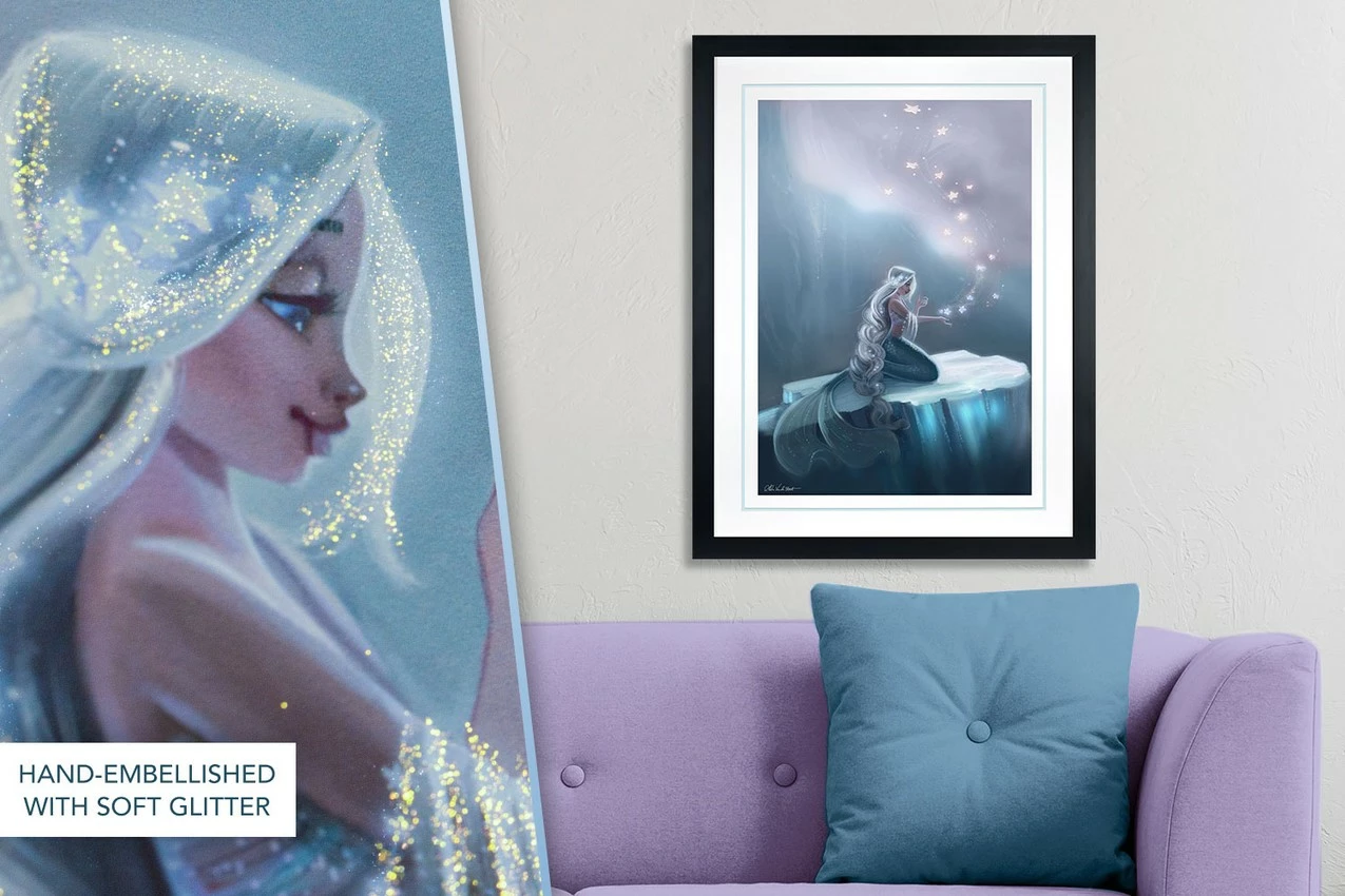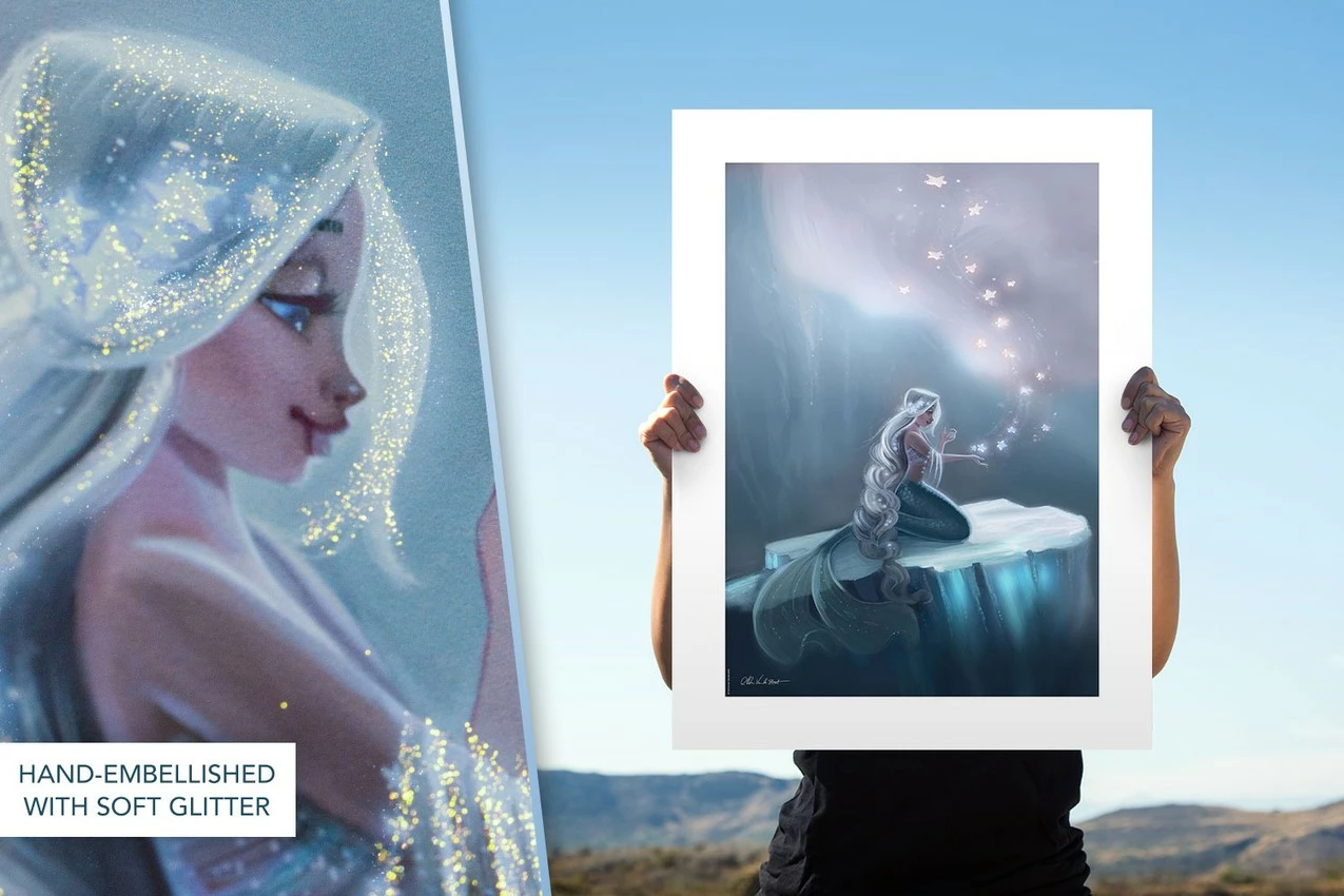 Each Sideshow Exclusive Winter Stars Deluxe Variant Fine Art Print is hand-signed and hand-numbered by Adrianna Vanderstelt as a part of the limited edition of only 100 pieces. Available unframed or in a custom framed presentation, this dazzling mermaid art print makes a beautiful addition to any wall or collection.