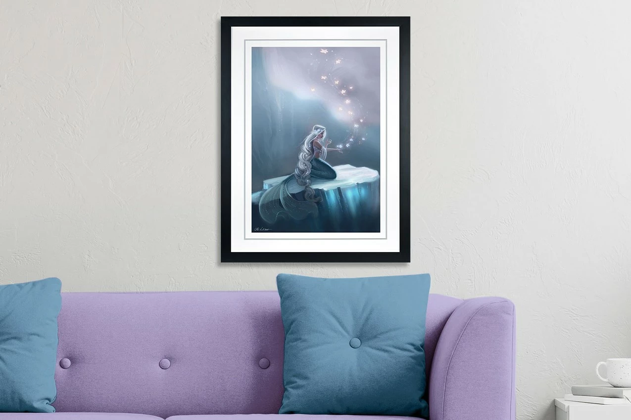 Each Winter Stars Fine Art Print is hand-signed by Adrianna Vanderstelt as a part of this release through Sideshow. Available unframed or in a custom framed presentation, this mermaid art print makes a beautiful addition to any wall or collection.