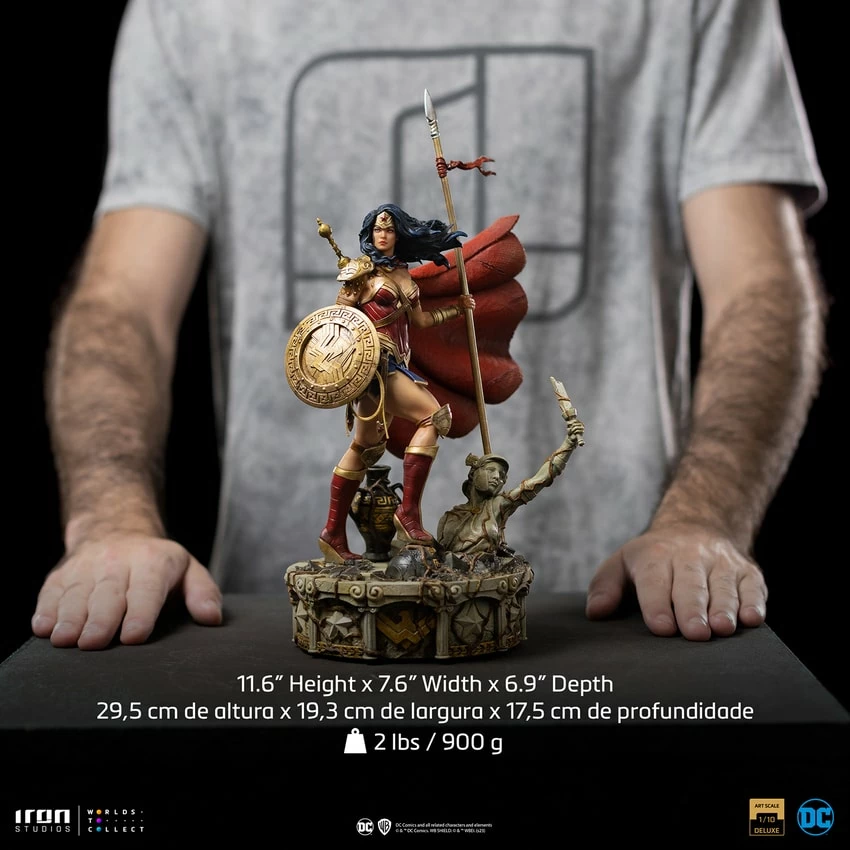 Over a base decorated with Greek columns around her with the symbolic star sculpted between the columns and the logo in the front, Iron Studios proudly presents the Wonder Woman Unleashed Deluxe – DC Comics – Art Scale 1:10 Statue, presenting the greatest female superhero in the DC universe in a new standard of excellence in the 1:10 scale, over an extremely detailed base with mythological elements that remind a battle set of antient Greece, and completes the iconic DC Trinity together with the statues of Superman and Batman Unleashed Deluxe previously revealed by Iron Studios.